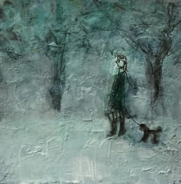 アズテック・カメラ(Aztec Camera)というロックバンドがイギリスにあって、「walk out to winter」が1983年ヒットしていた。冬になるとこの曲が頭のなかでまわりだし、冷たい空気の中へ出かけるのだ。黒いインクのGペンで散歩の女の子と犬を一気に描いた。